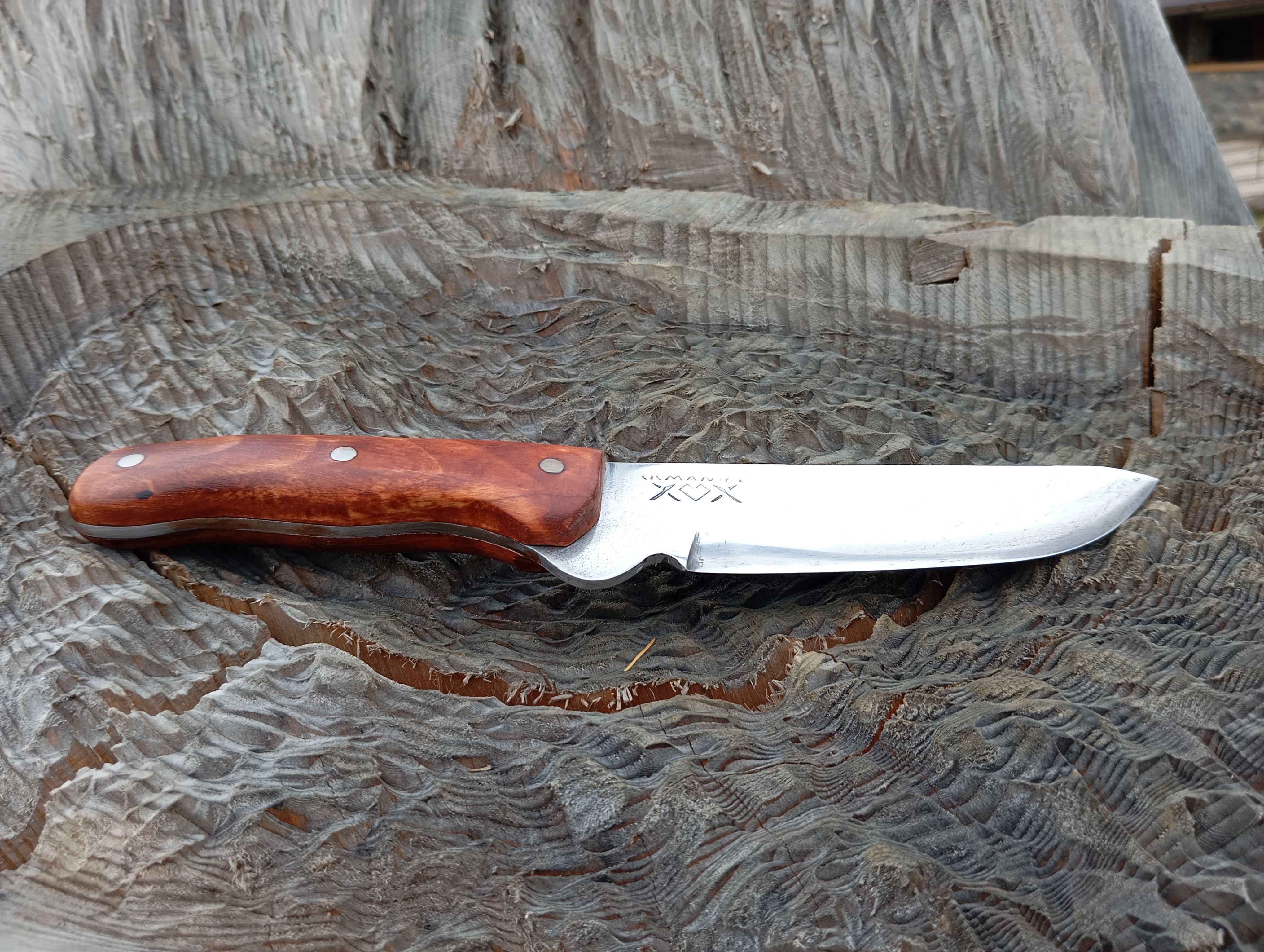 Ručne vyrábaný lovecký nôž je ideálny spoločník do prírody a na lov. Rukoväť z kvalitného dreva má dĺžku 11 cm a perfektne padne do ruky. Čepel s dĺžkou 11 cm je vyrobená z tvrdej ocele Bohler N690, ktorá zaručuje ostrie a odolnosť aj pri náročnom používaní. Nôž dodávame s elegantným koženým púzdrom pre bezpečné a pohodlné nosenie. Hrúbka čepele 4 mm poskytuje optimálnu pevnosť a spoľahlivosť.