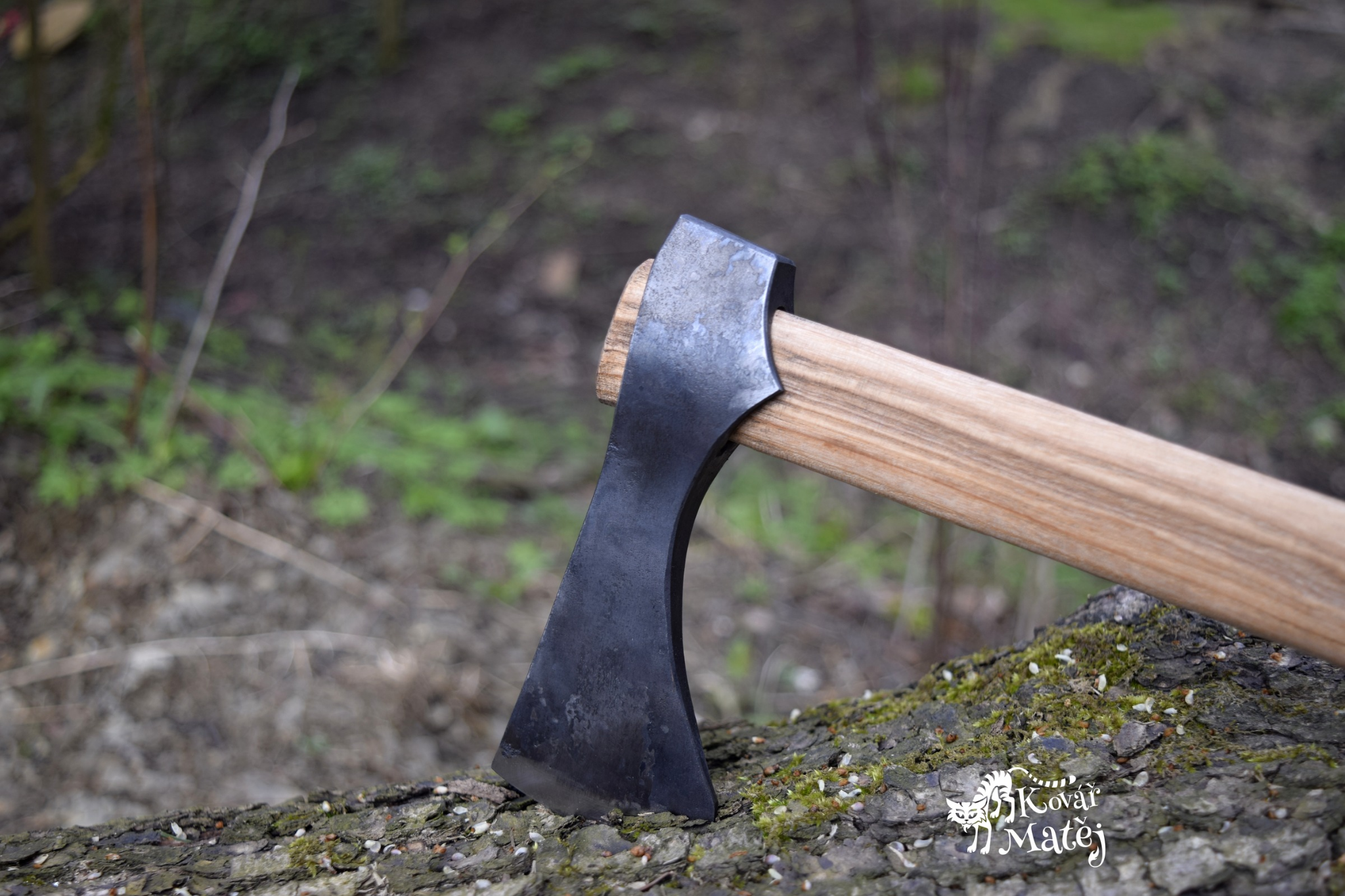 Blade: Made of high-carbon steel, hand-forged to preserve its unique texture. The shape is inspired by the famous “bearded axe,” allowing for a secure grip just below the blade during precision work (e.g., carving dowels).