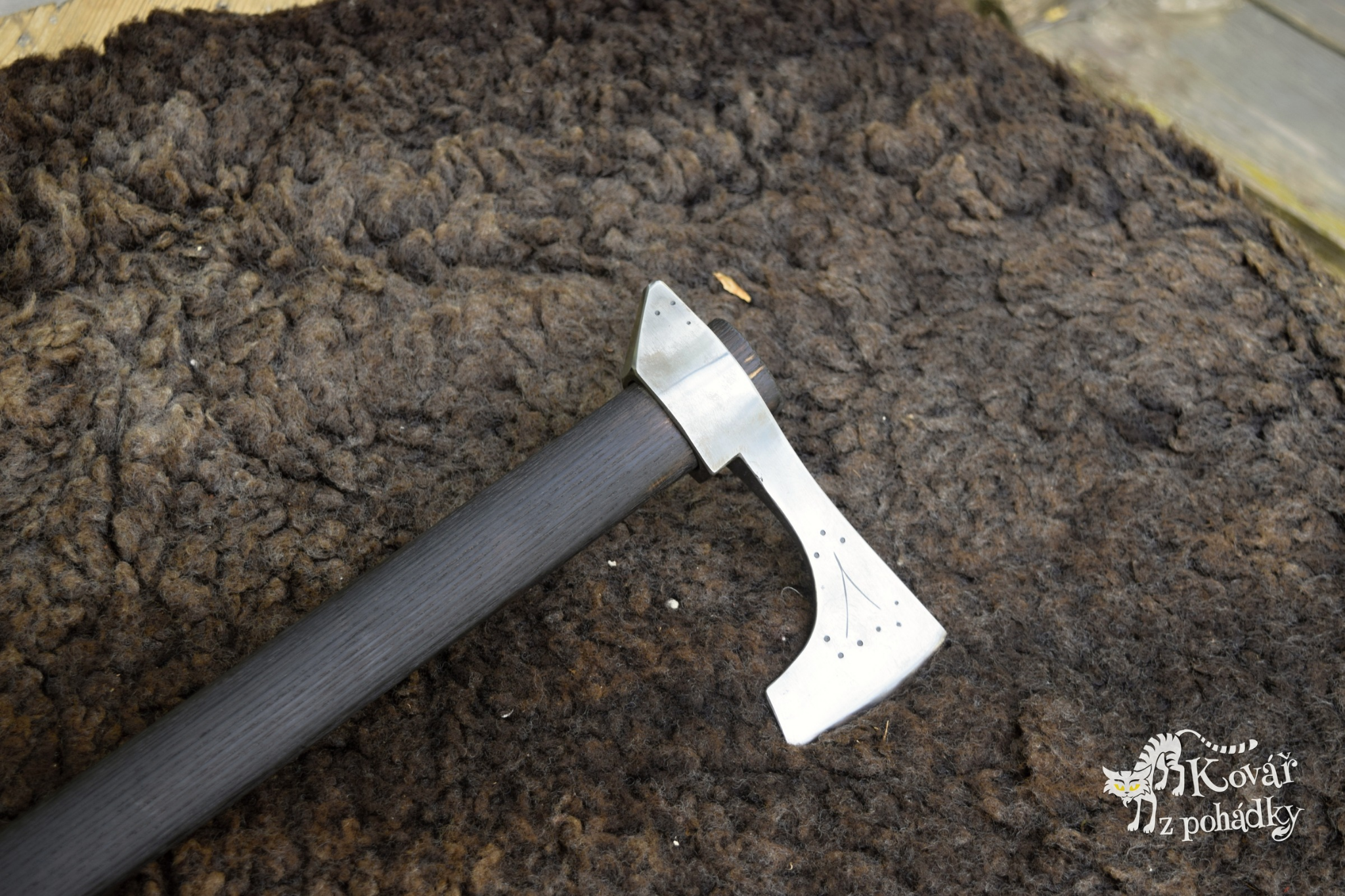 Blade: Made of high-carbon steel, hand-forged to preserve its unique texture. The shape is inspired by the famous “bearded axe,” allowing for a secure grip just below the blade during precision work (e.g., carving dowels).